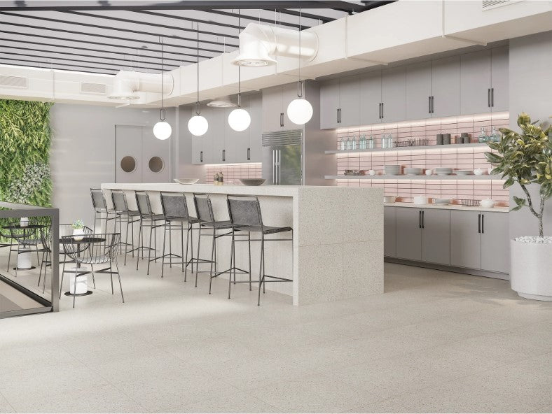 Cosmopolitan and refined, Terrazzo porcelain tile effortlessly blends into the unique design of any space - bringing timeless style to your home. The flexible color shades and mid-century aesthetic make this tile perfect for any contemporary interior or sophisticated exterior.