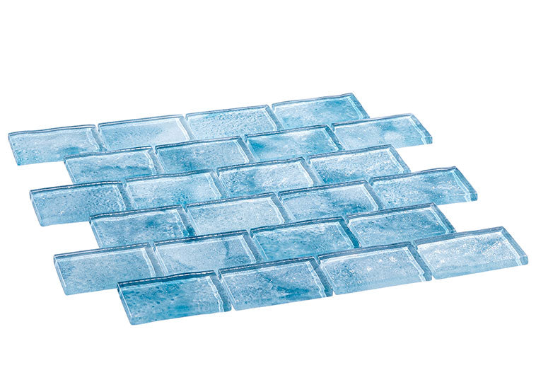 The Bellagio Frothy Swirls Collection is a unique brick mosaic featuring swirled colors made from glass. Boasting 3 stunning hues of blue, as well as a grey variant, this tile is an ideal choice for any pool.