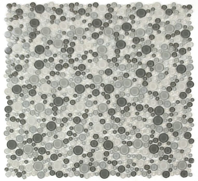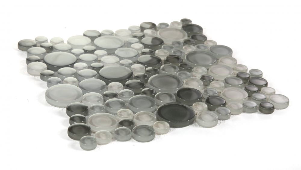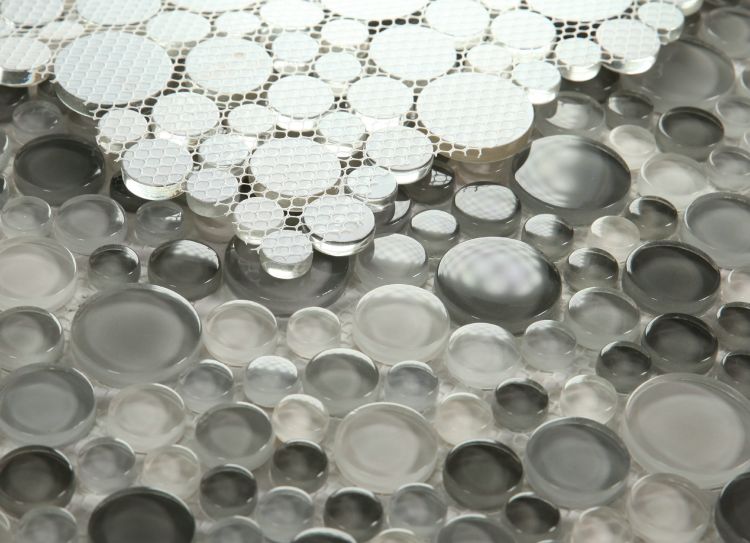 Bianco Lady mosaic by Elysium is combination of round white and frosted glass with broken glass in between. Perfect for the clean, crisp look on any wall, shower floor or pool!