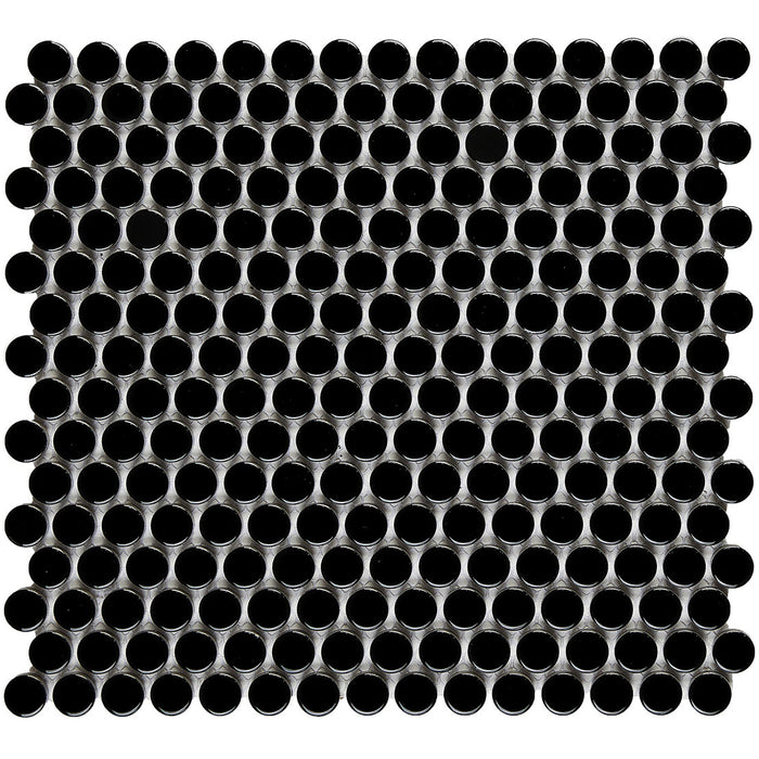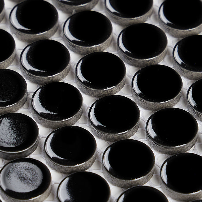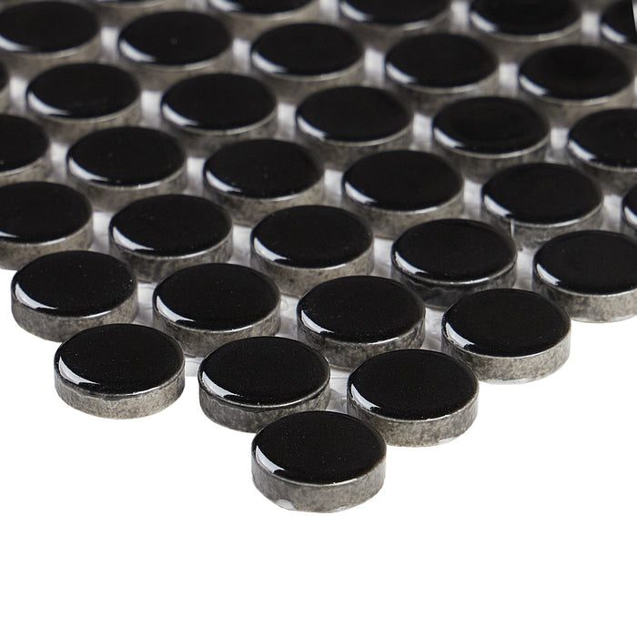 Lungarno Ceramics - Finish Line Penny Round Mosaics - Black Gloss